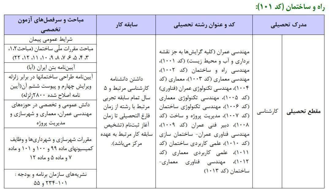 منابع آزمون و رشته های مرتبط کارشناس دادگستری راه و ساختمان 1404 مرکز کارشناسان رسمی قوه قضاییه