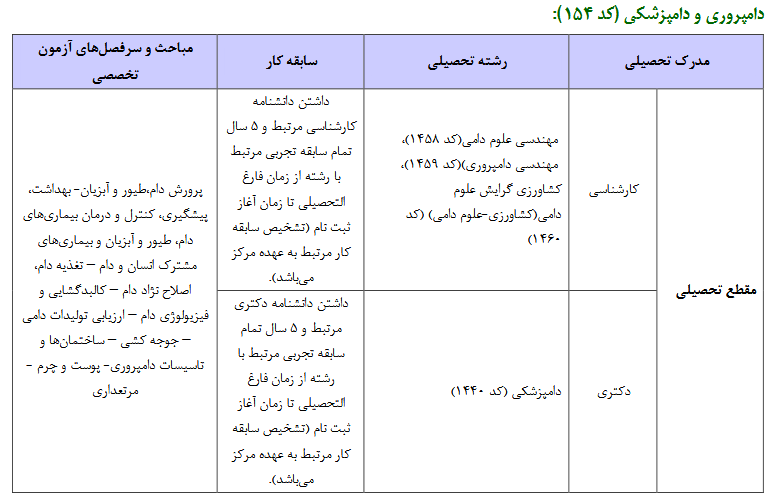 منابع آزمون و رشته های مرتبط کارشناس دادگستری دامپروری و دامپزشكی ۱۴۰۴ مرکز کارشناسان رسمی قوه قضاییه