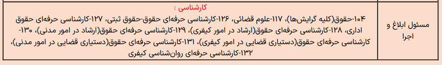 رشته های مجاز ثبت نام شغل مسئول ابلاغ و اجرا قوه قضایی ۱۴۰۴