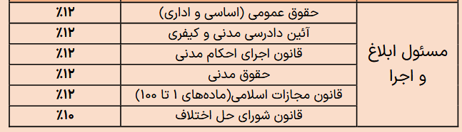 مواد آزمون تخصصی شغل مسئول ابلاغ و اجرا در جدول زیر آمده است: