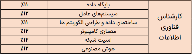 مواد آزمون تخصصی کارشناس فناوری اطلاعات در جدول زیر آمده است: