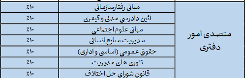 مواد آزمون تخصصی متصدی امور دفتری در جدول زیر آمده است: