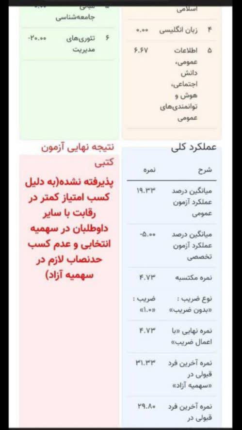 نمونه کارنامه آزمون استخدامی کادر اداری قوه قضاییه ۱۴۰۰